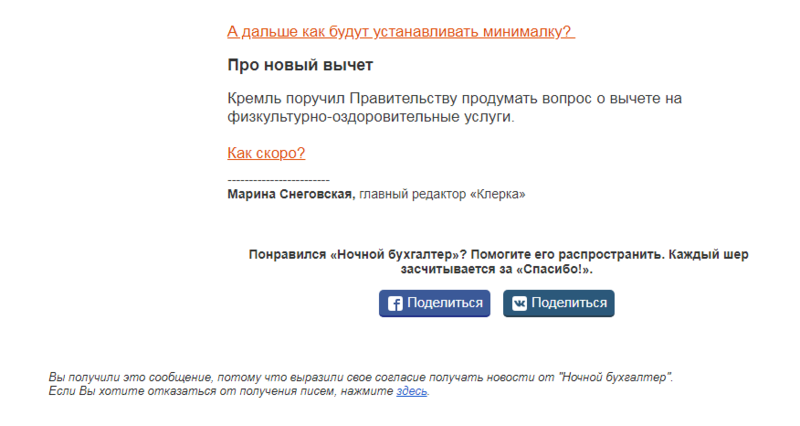 Это новая ультрасовременная рассылка обязательна для ежедневного вечернего чтения настоящим бухгалтерам.