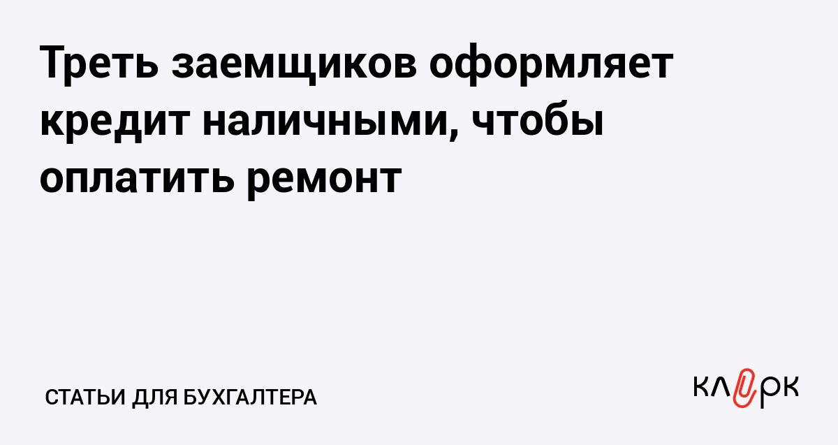 Треть заемщиков оформляет кредит наличными, чтобы оплатить ремонт