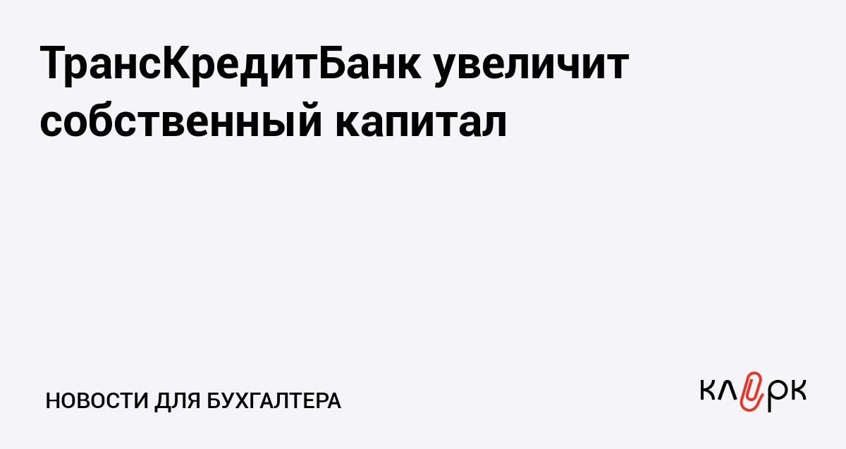 Собственный капитал ТрансКредитБанка возрастет на 4,8 млрд. рублей.
