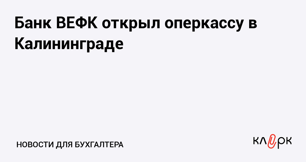 В Калининграде к обслуживанию клиентов приступила новая операционная касса Банка ВЕФК. Данное подразделение стало 8-м офисом ВЕФК, открытым с начала 2008 года.