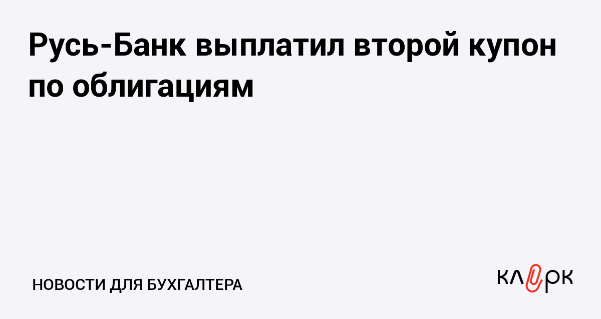 21 февраля Русь-Банк полностью исполнил обязательства по выплате купонного дохода владельцам облигаций серии 02 за второй купонный период.