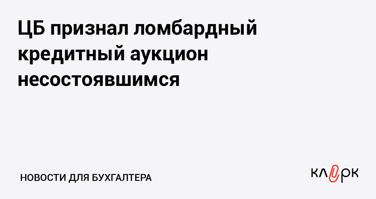 ЦБ признал ломбардный кредитный аукцион несостоявшимся