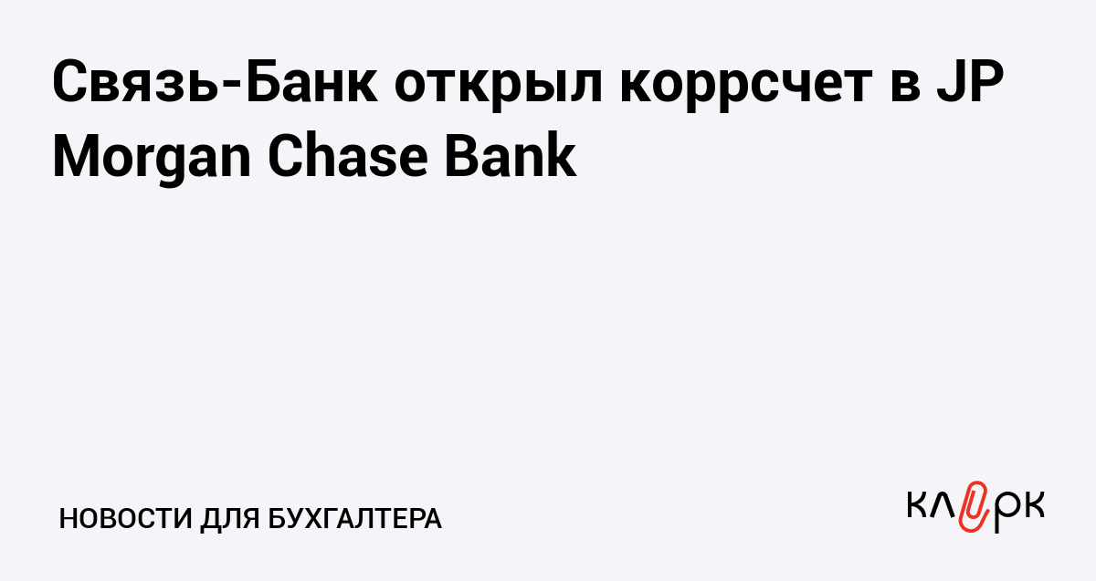Связь-Банк открыл коррсчет в JP Morgan Chase Bank