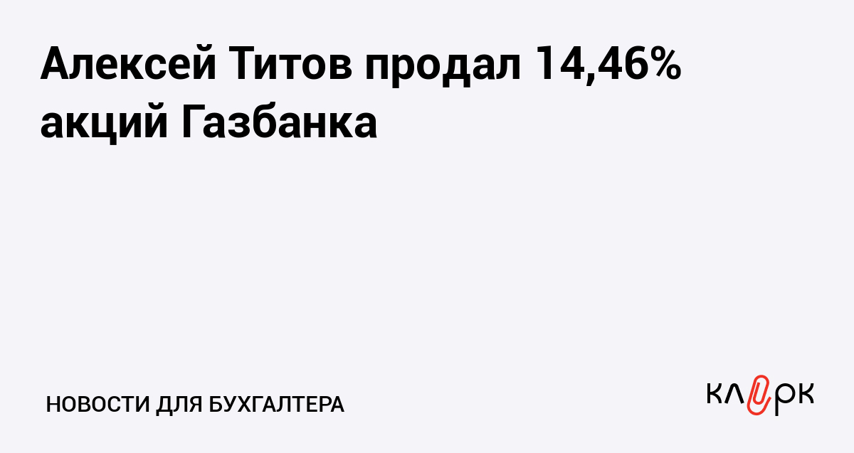 Сын бывшего губернатора Самарской области Константина Титова Алексей Титов продал свою долю в самарском Газбанке.