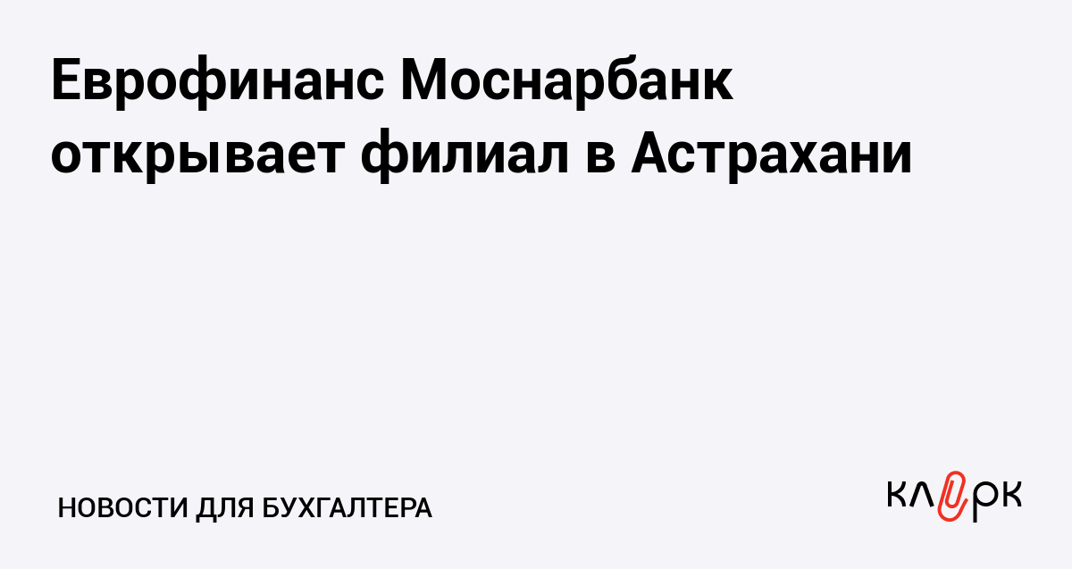 Еврофинанс Моснарбанк открывает филиал в Астрахани