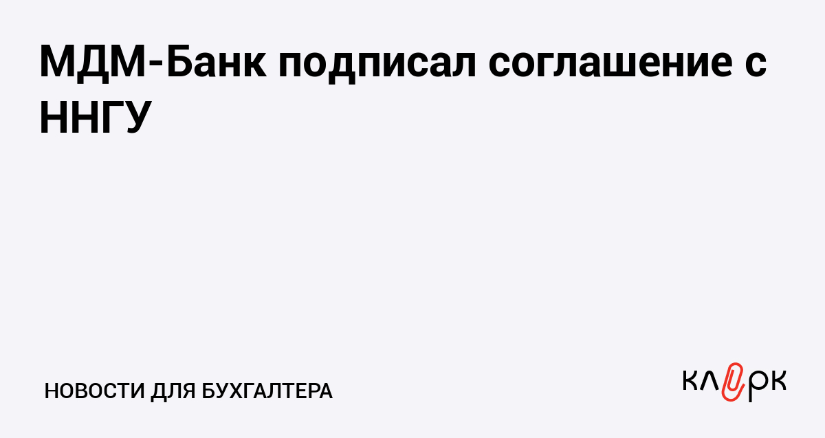 МДМ-Банк и Нижегородский государственный университет им. Н. И. Лобачевского подписали Соглашение о стратегическом партнерстве. Договор заключен сроком на пять лет в рамках программы сотрудничества МДМ-Банка с ведущими вузами России, получившей название "Мир деловой молодежи". В программе, которая направлена на повышение уровня высшего и бизнес-образования в сфере финансов и банковского дела, участвуют крупнейшие вузы различных регионов РФ.