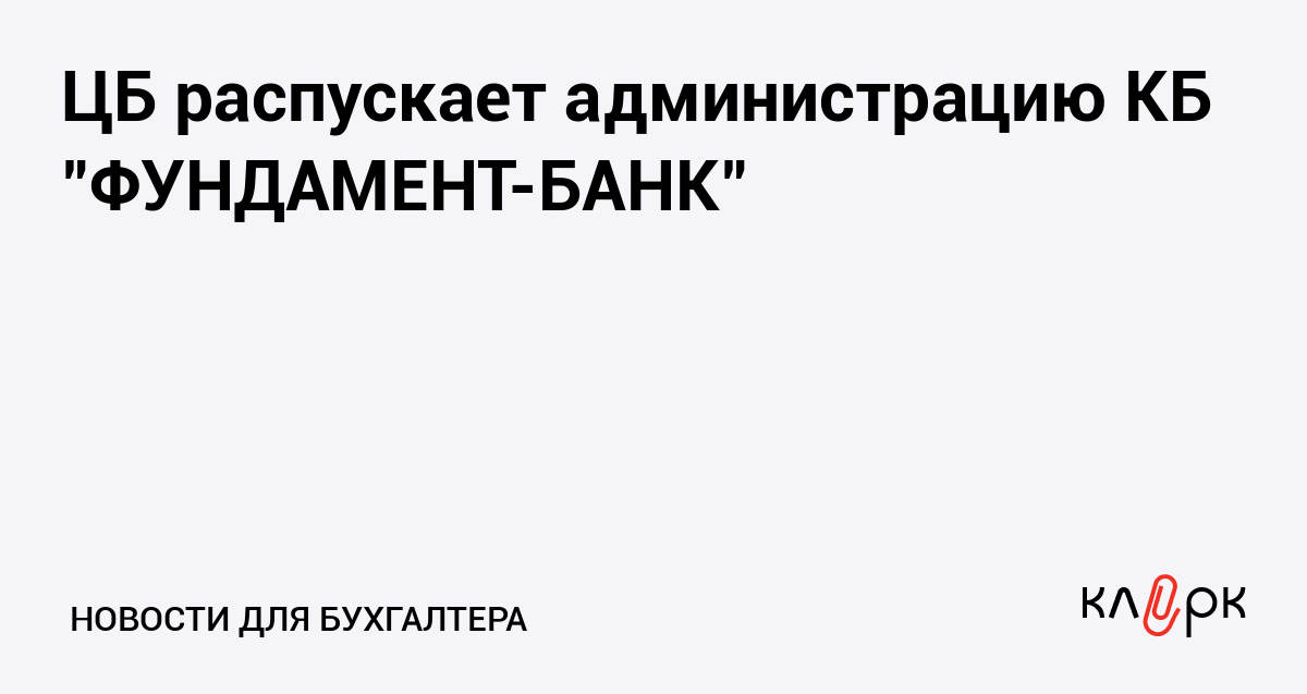 ЦБ распускает администрацию КБ "ФУНДАМЕНТ-БАНК"