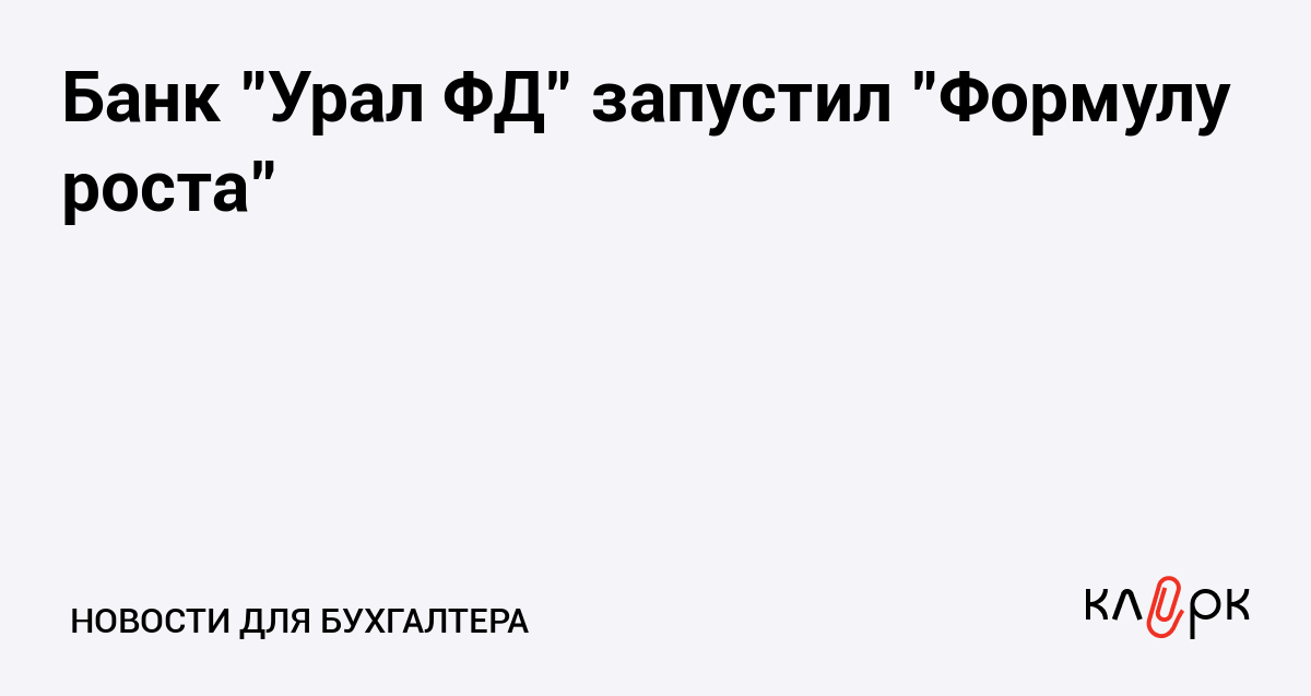 С 24 марта в АКБ "Урал ФД" вводится новый вклад "Формула роста".