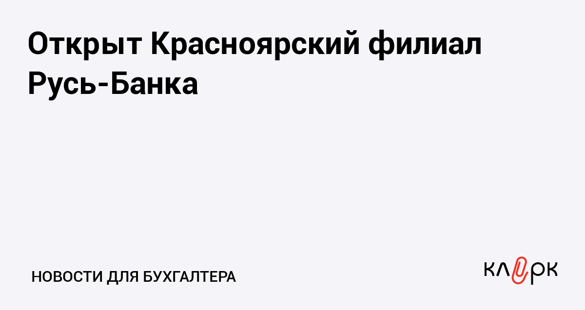 Красноярский филиал Русь-Банка приступил к работе с клиентами. Первый расчетный счет в филиале был открыт 3 марта, а 18 марта - был открыт первый вклад.