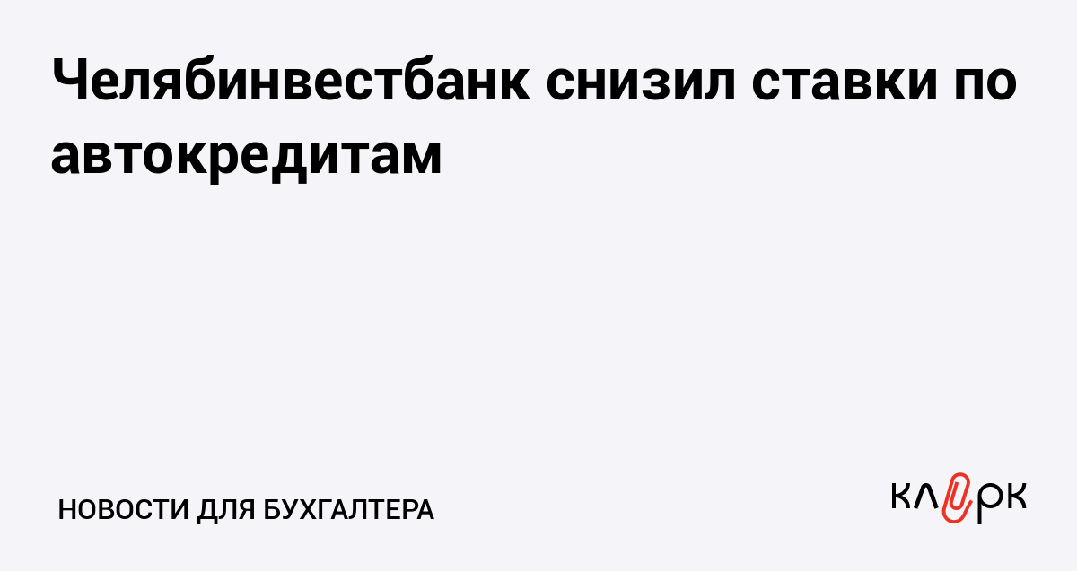 Челябинвестбанк снизил ставки по автокредитам. Теперь кредит на покупку нового автомобиля в банке можно получить по ставке от 10% годовых. Также банк предлагает отдельные программы автокредитования, по которым не предусмотрено обязательное страхование автомобилей по риску автокаско.
