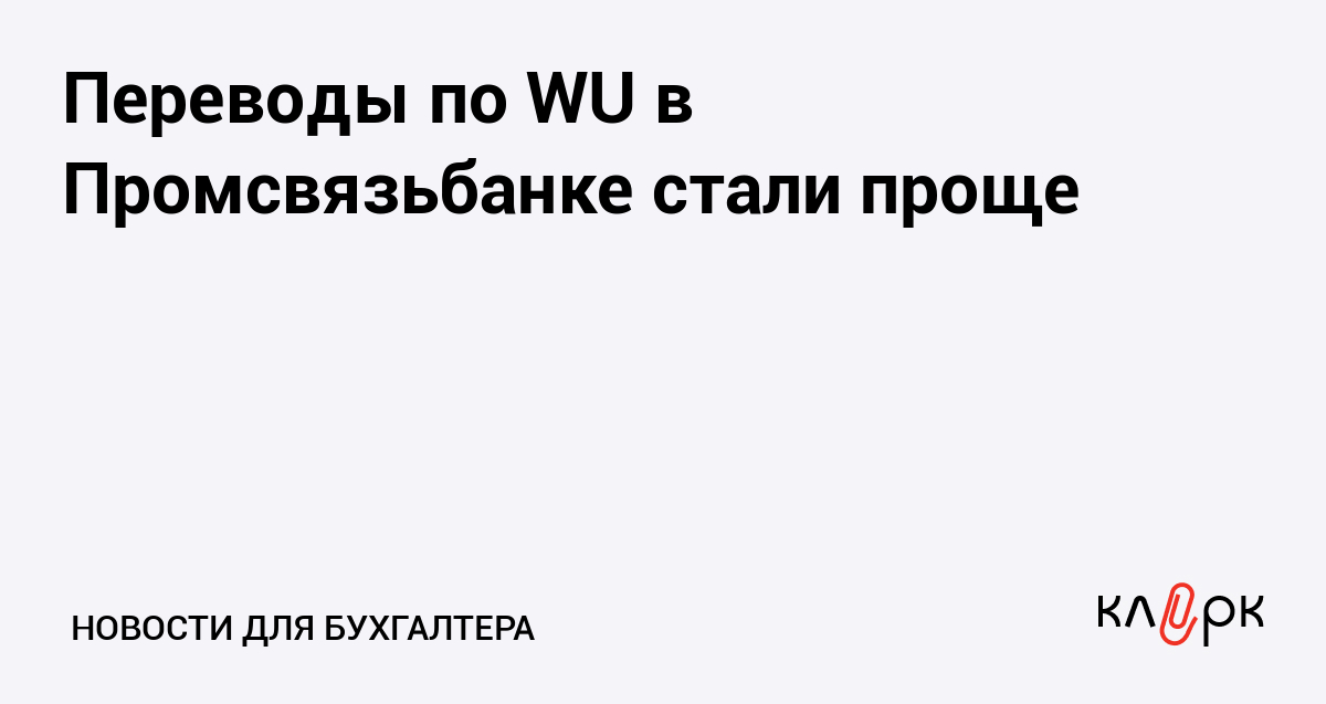 Промсвязьбанк упростил процедуру осуществления переводов по системе Western Union.