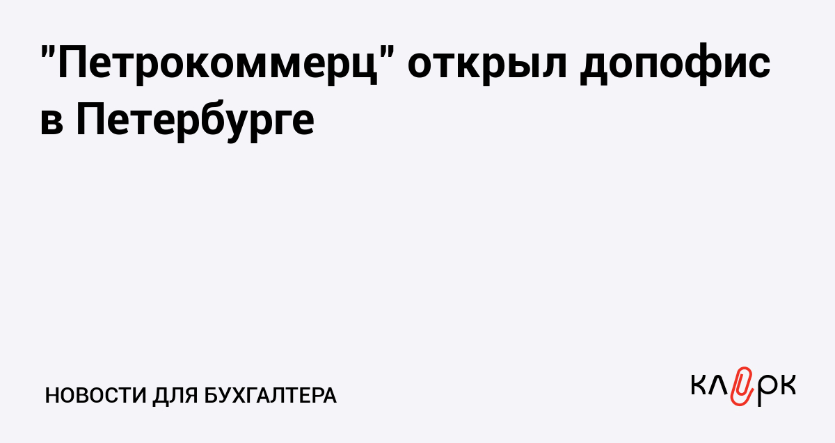 В Санкт-Петербурге приступил к работе дополнительный офис "Петроградский" банка "Петрокоммерц". В ближайшее время банк планирует открыть новые дополнительные офисы и в других районах города.