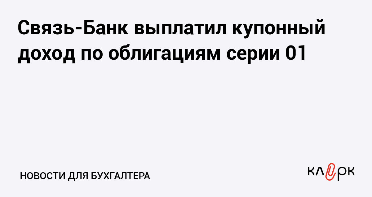 Связь-Банк выплатил купонный доход по облигациям серии 01