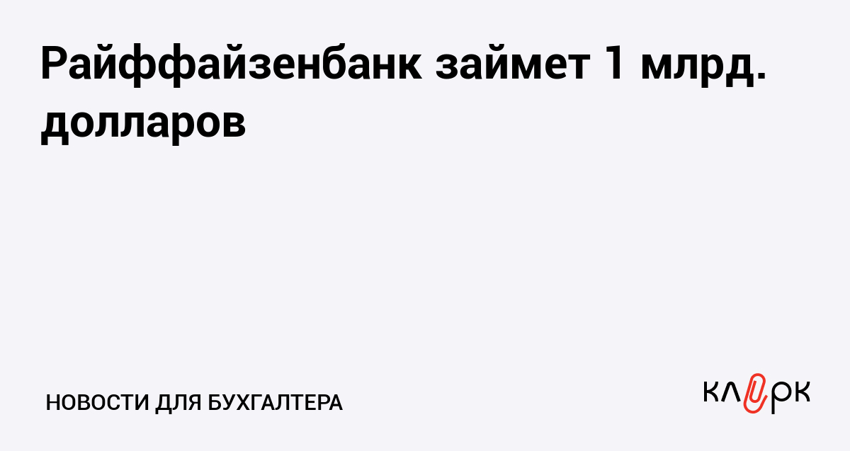 Райффайзенбанк подписал сделку по привлечению синдицированного кредита в размере1 млрд. долларов. Ставка по кредиту, привлекаемому на 2 года, составила LIBOR+0,65% годовых.