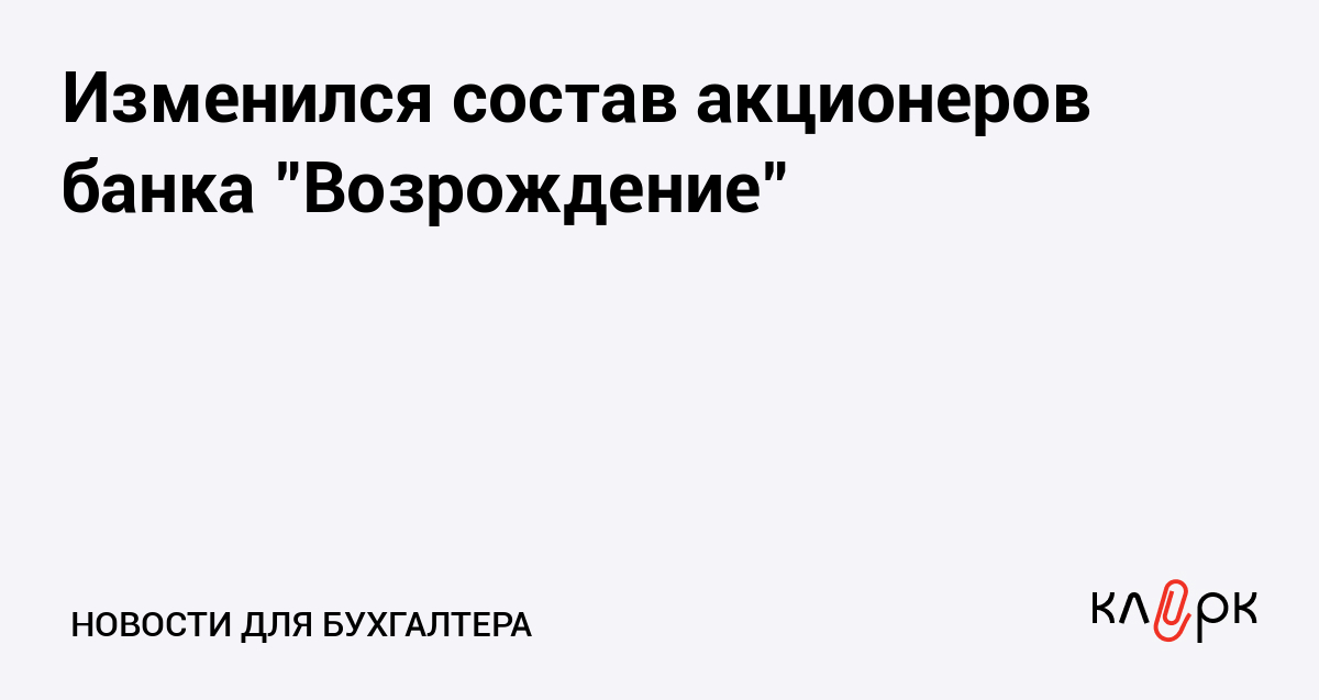 Банк "Возрождение" сообщил об изменениях в составе акционеров.