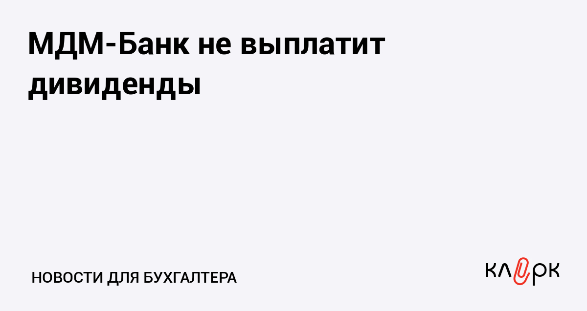 МДМ-Банк не выплатит дивиденды