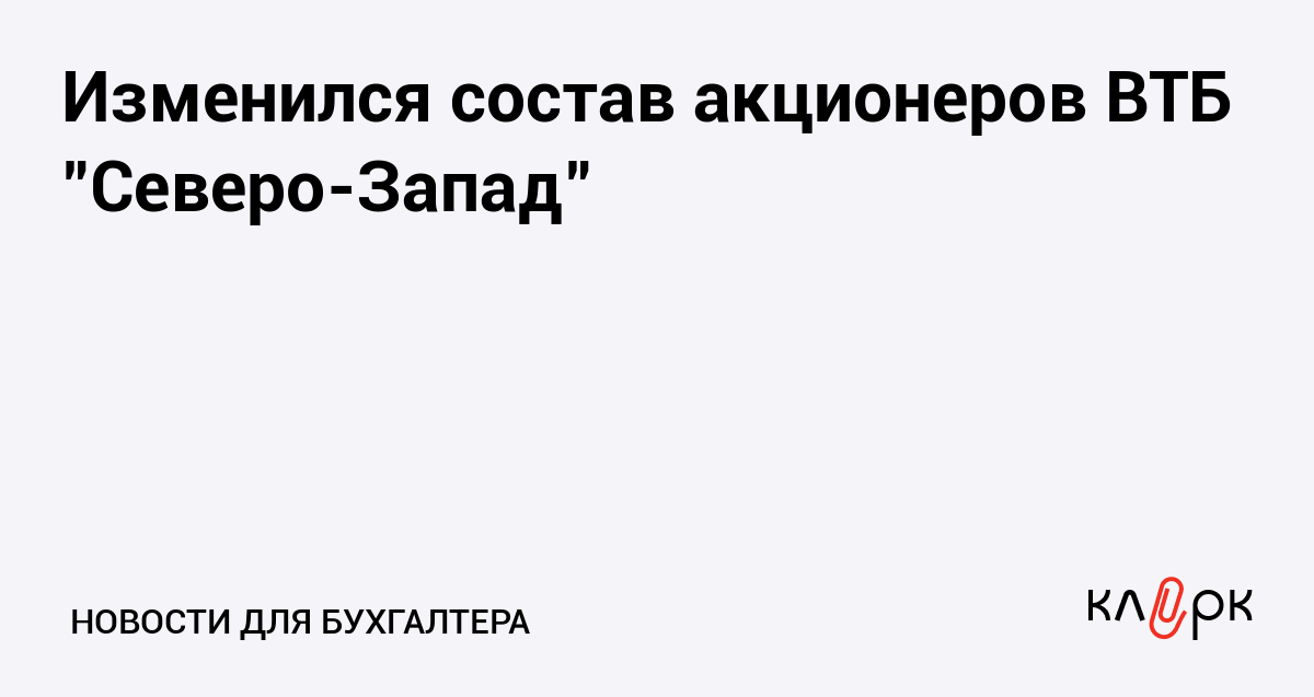 Изменился состав акционеров ВТБ "Северо-Запад"