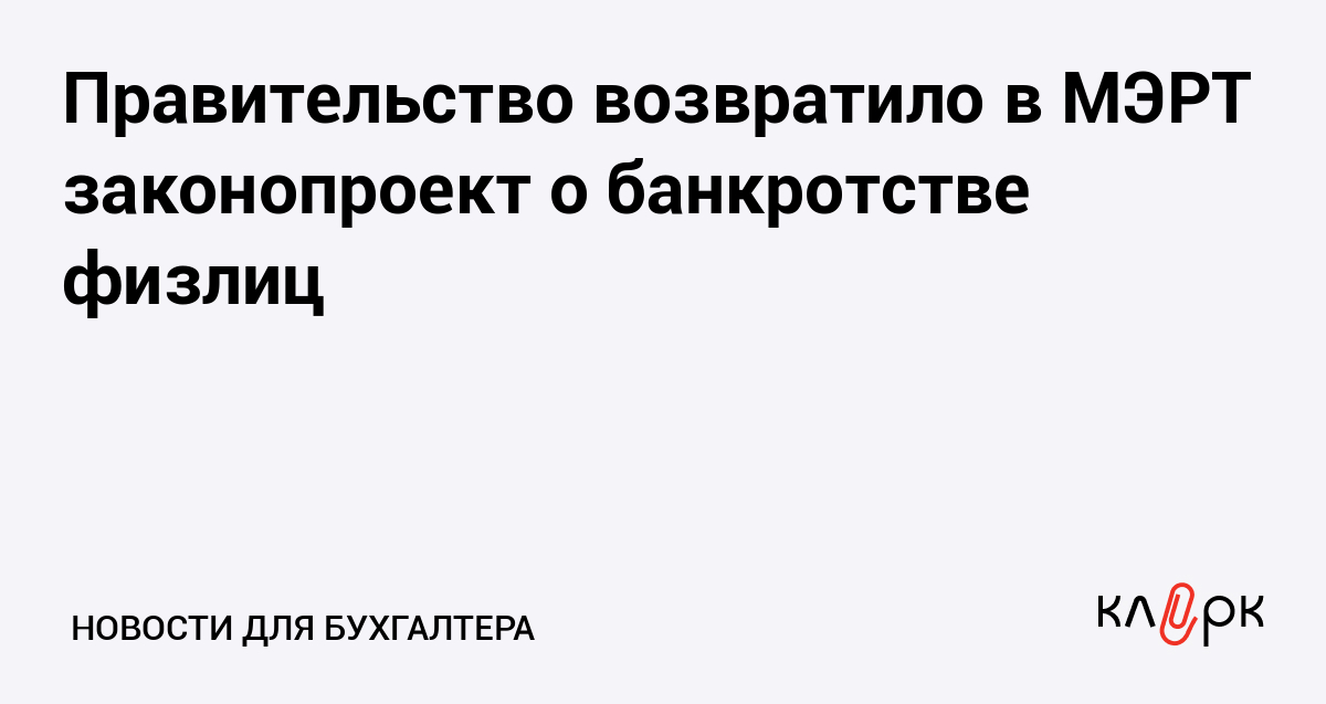 Правительство возвратило в МЭРТ законопроект о банкротстве физлиц