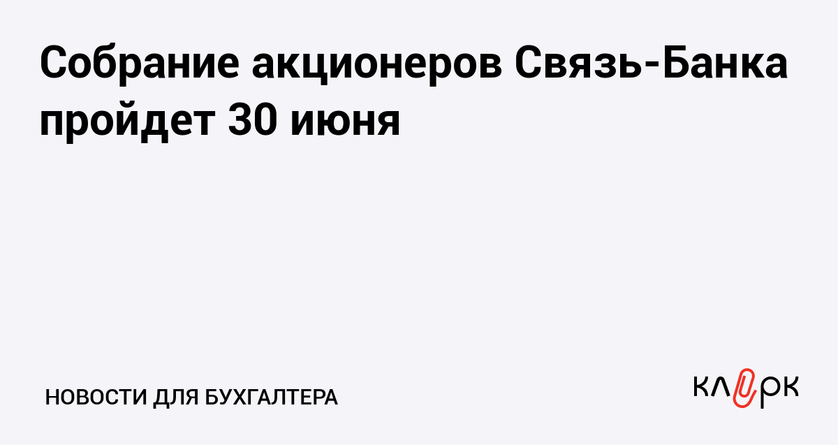 Собрание акционеров Связь-Банка пройдет 30 июня