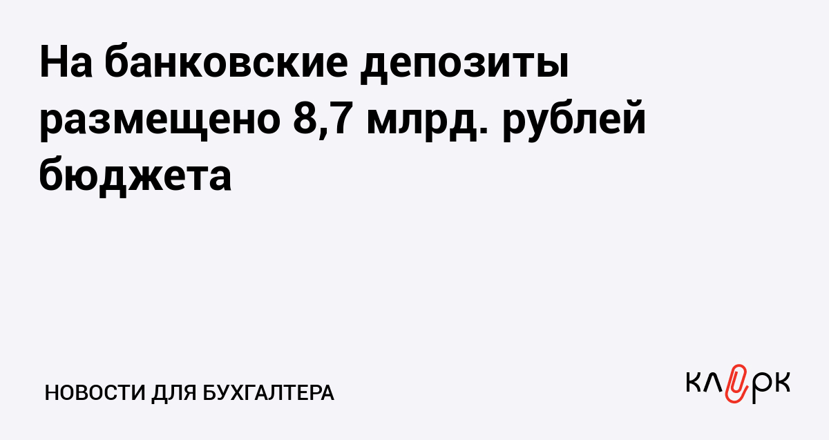 На банковские депозиты размещено 8,7 млрд. рублей бюджета