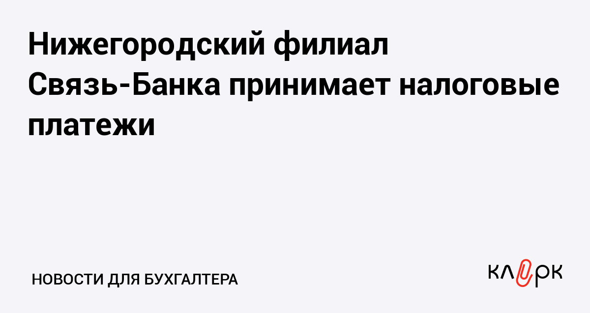 Нижегородский филиал Связь-Банка принимает налоговые платежи