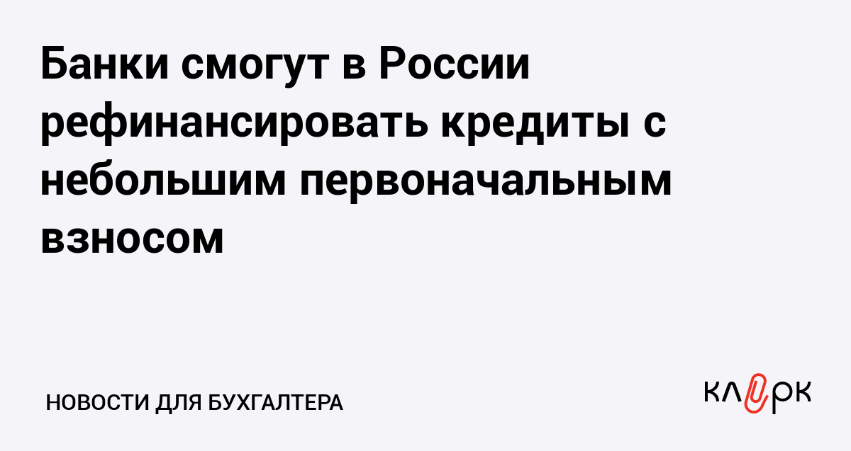 Банки смогут в России рефинансировать кредиты с небольшим первоначальным взносом
