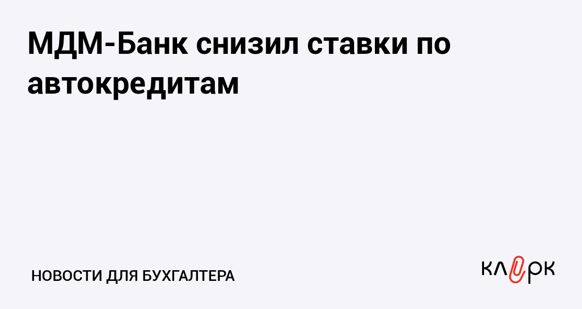 МДМ-Банк снизил процентные ставки по программам автокредитования "Классика" и "Отсроченный последний платеж".