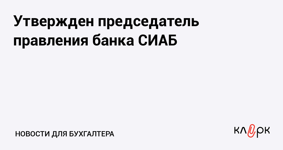 Главное Управление ЦБ по Санкт-Петербургу утвердило Сергея Инкина в должности председателя правления банка "СИАБ".