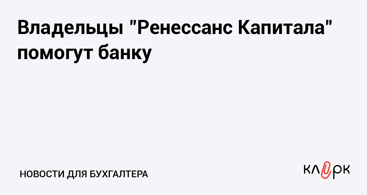 Владельцы банка "Ренессанс Капитал" окажут ему безвозмездную финансовую помощь в размере 3 млрд. рублей. Средства являются безвозмездной помощью и поступят в банк до 30 июня 2009 года. Такое решение принял единственный участник банка "Ренессанс Капитал" (работает под брендом "Ренессанс Кредит") - ООО "Казначей Финанс Инвест"