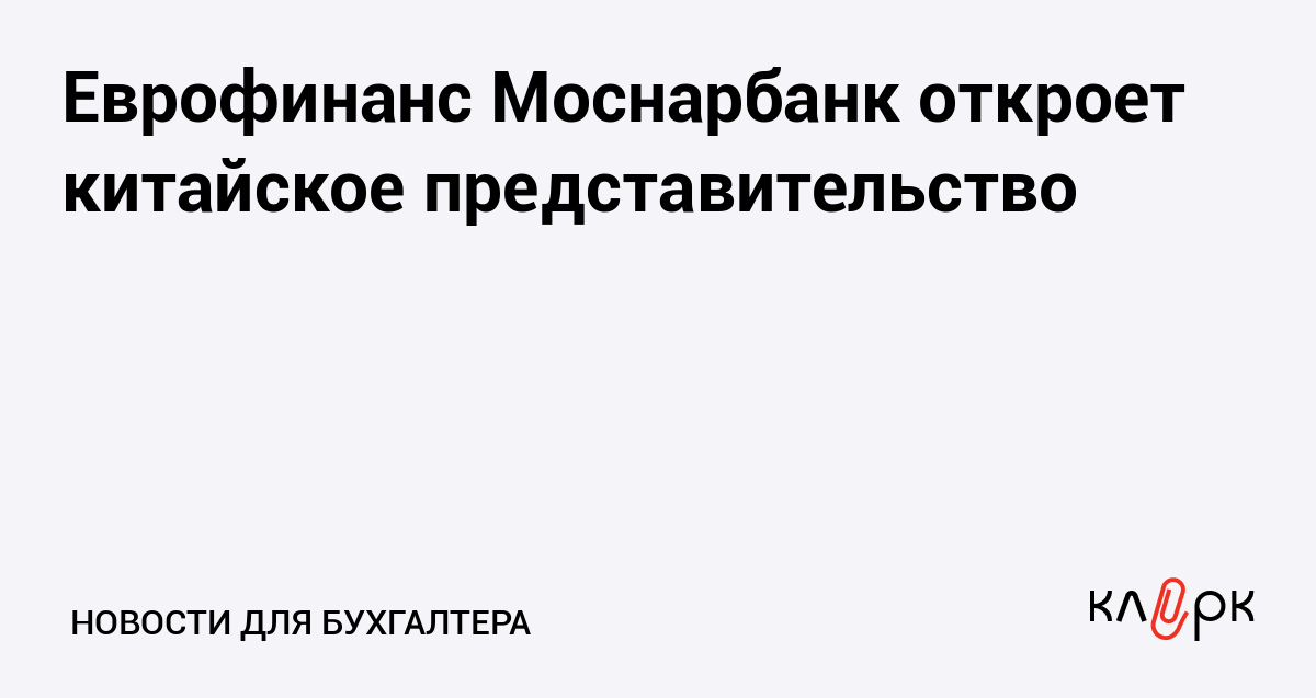 Еврофинанс Моснарбанк откроет китайское представительство