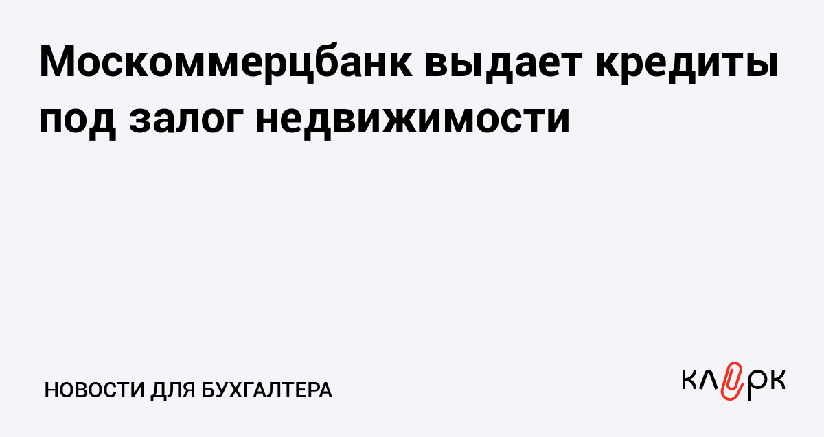 Москоммерцбанк выдает кредиты под залог недвижимости