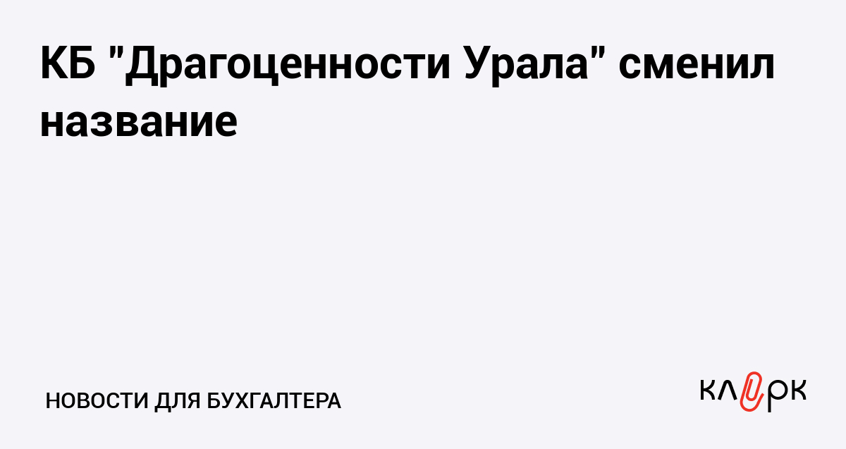 КБ "Драгоценности Урала" сменил название