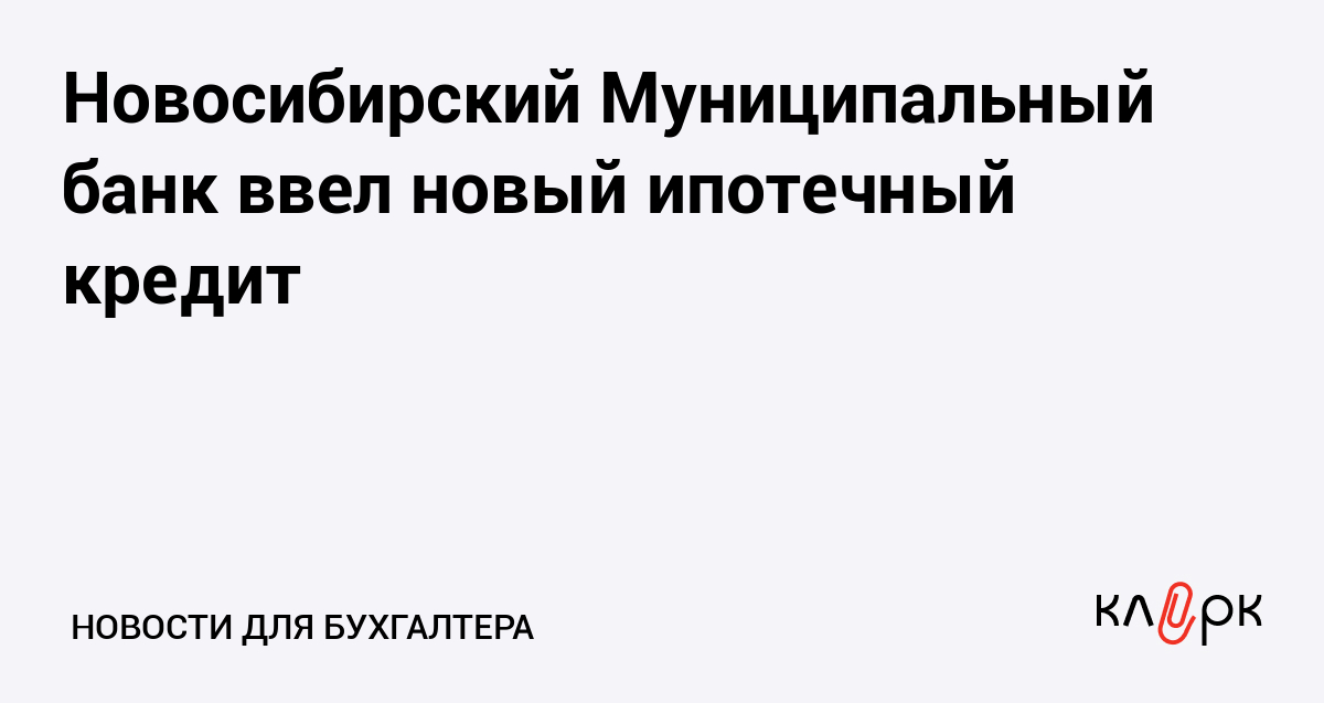 Новосибирский Муниципальный банк ввел новый ипотечный кредит