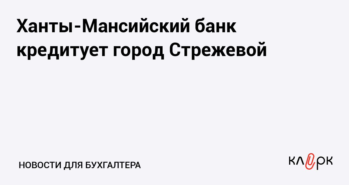 Ханты-Мансийский банк предоставил администрации города Стрежевой кредит на 40 млн. рублей. Кредит предоставлен для финансирования дефицита бюджета.
