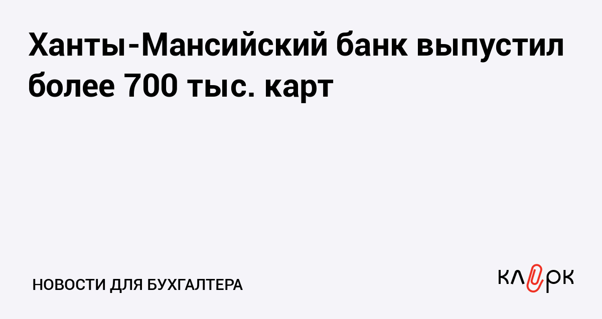Ханты-Мансийский банк выпустил более 700 тыс. карт