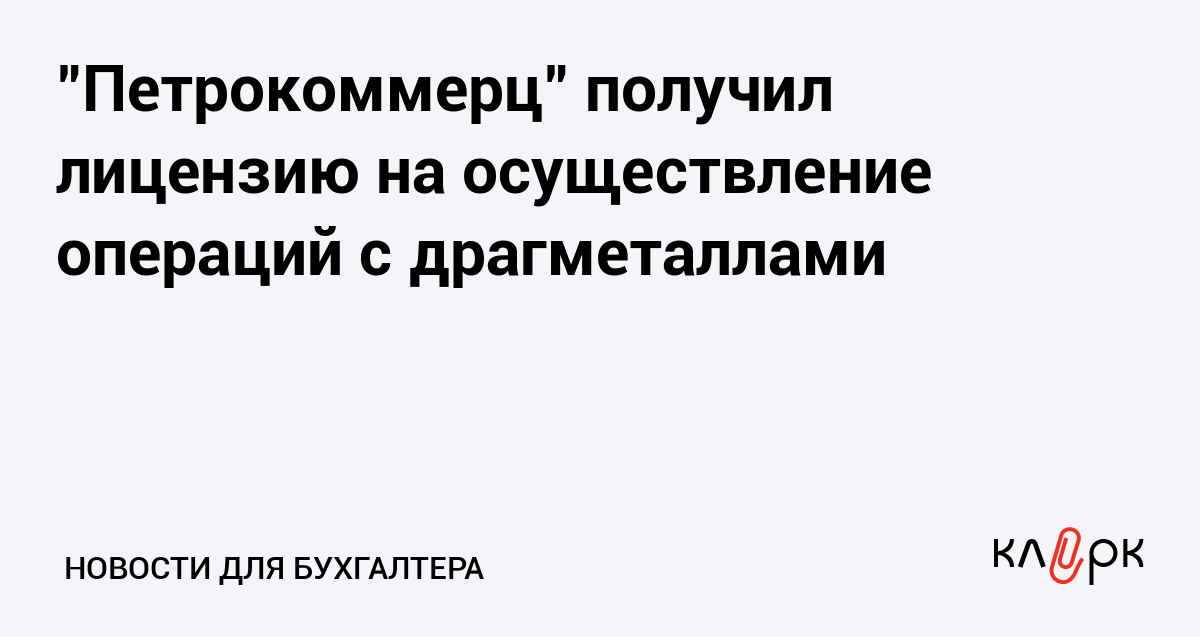 Центральный банк РФ выдал банку "Петрокоммерц" лицензию на осуществление банковских операций с драгоценными металлами.