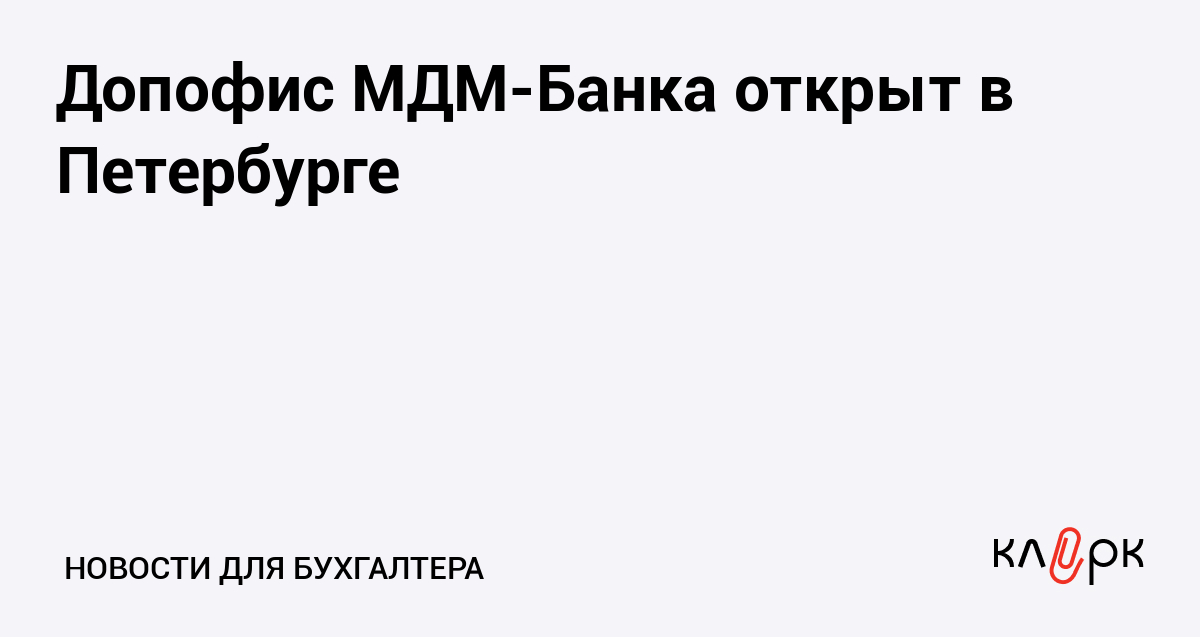 МДМ-Банк открыл дополнительный офис в Санкт-Петербурге.