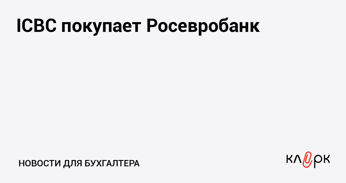 100% акций Росевробанка приобретает крупнейший банк Китая - Industrial and Commercial Bank of China.