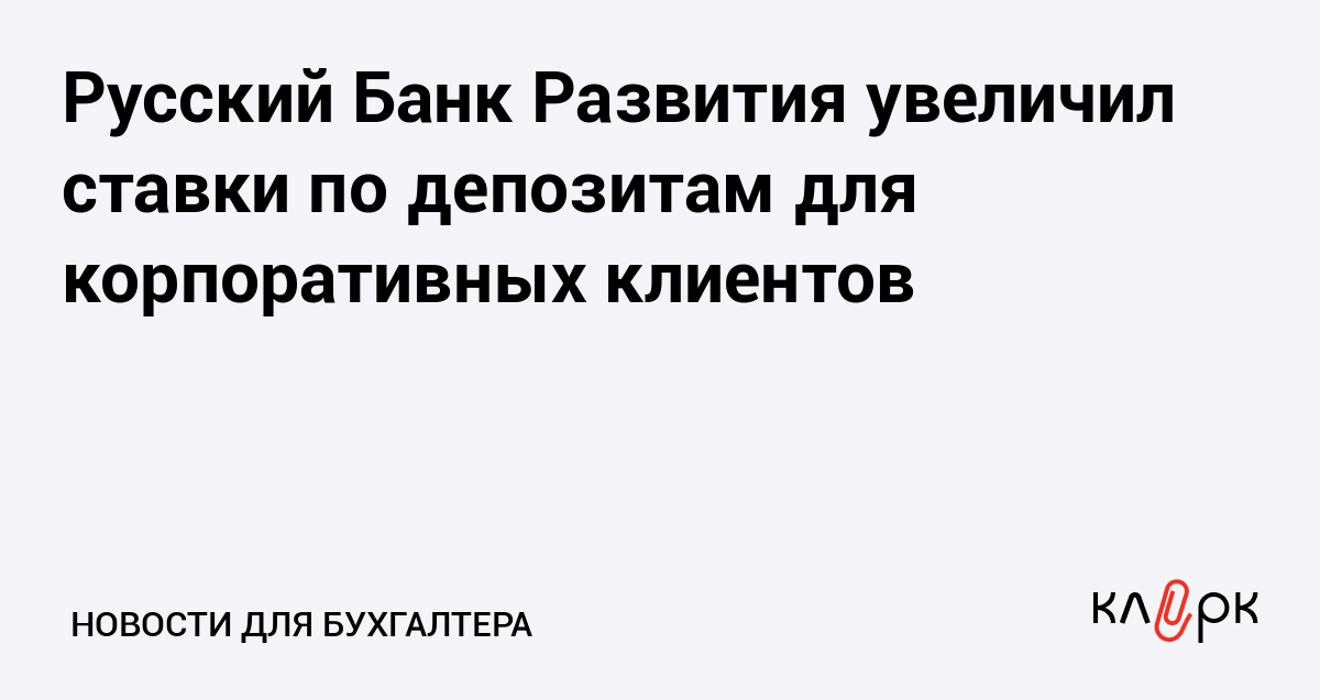 Русский Банк Развития увеличил ставки по депозитам для корпоративных клиентов