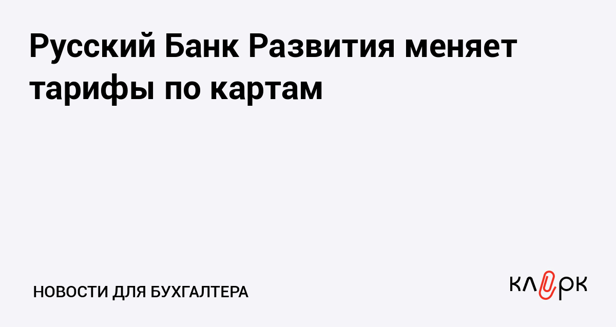 С 1 октября 2008 года вступают в силу новые тарифы по обслуживанию совмещенных карт, совмещенных револьверных карт и стандартных карт Visa Русского Банка Развития.