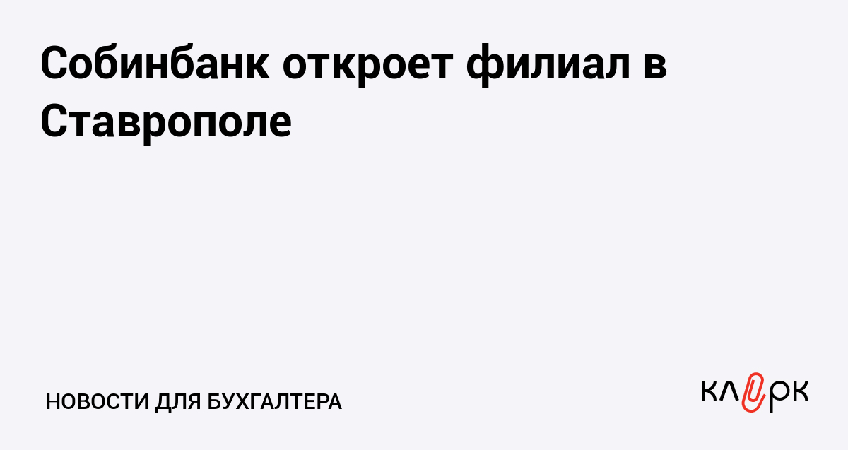 2 сентября 2008 года Центральный банк РФ зарегистрировал новый филиал Собинбанка - "Ставропольский". Это 23-й по счету филиал данной кредитной организации, действующий на территории РФ. Новый филиал находится по адресу: 355017, Ставропольский край , г. Ставрополь, ул. Мира, д. 278д.