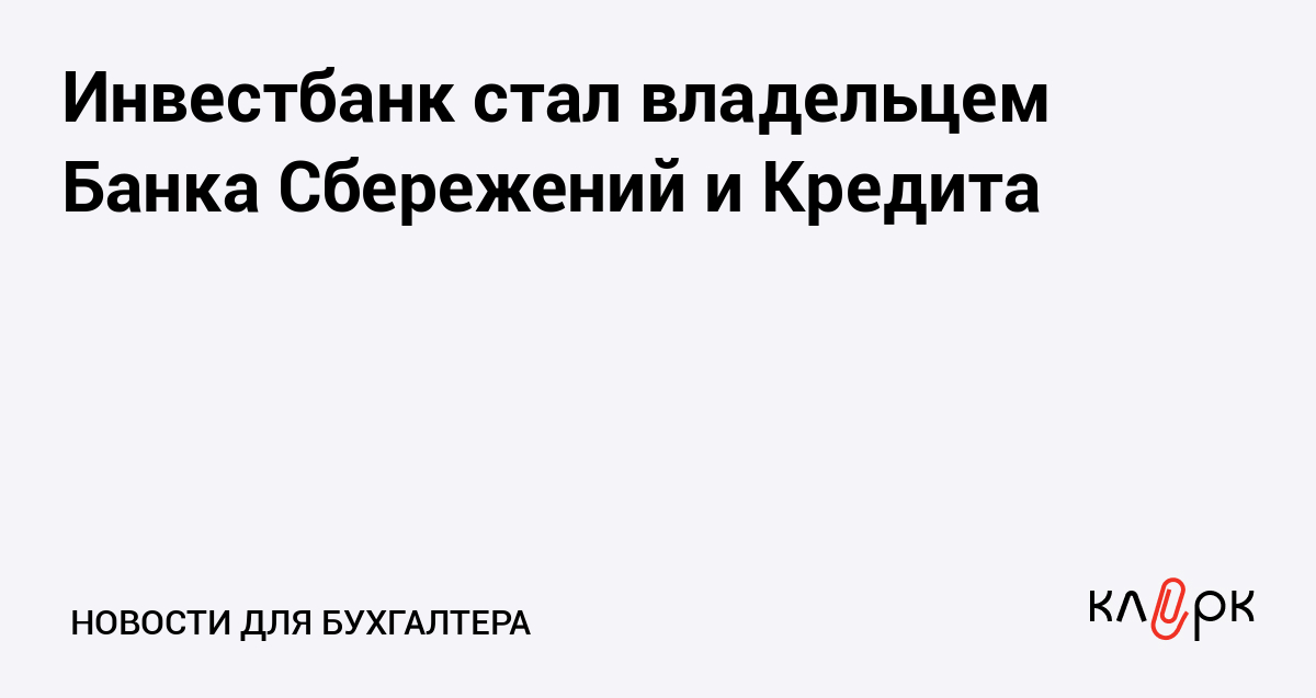 Инвестбанк увеличил долю участия в уставном капитале московского АКБ "Банк Сбережений и Кредита" до 100%.