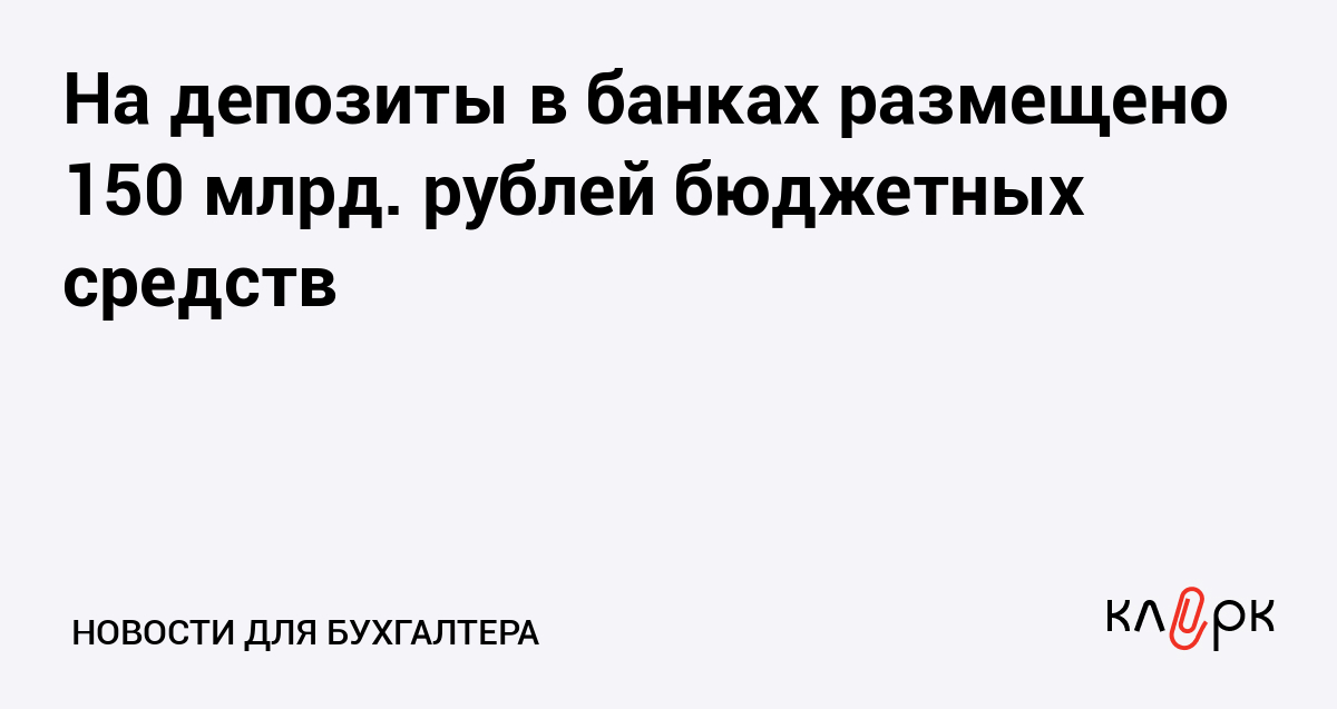 На депозиты в банках размещено 150 млрд. рублей бюджетных средств