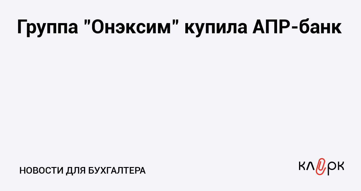 Группа "Онэксим" сообщает о приобретении 100% акций ОАО "АПР-банк". После получения соответствующего разрешения Банка России, АПР-Банк и УК Росбанка станут основой для формирования новой банковской группы "Международная финансовая компания" (МФК).
