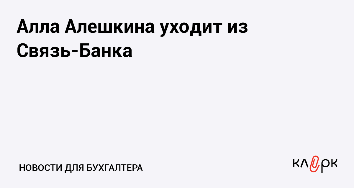 Бывший первый зампред Сбербанка Алла Алешкина, возглавившая в начале этого года Связь-Банк, покидает свой пост после финансовых проблем и смены акционера банка.