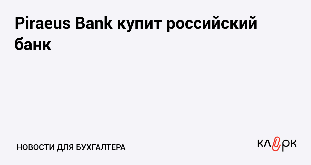 Греческий Piraeus Bank намерен приобрести небольшой российский банк.
