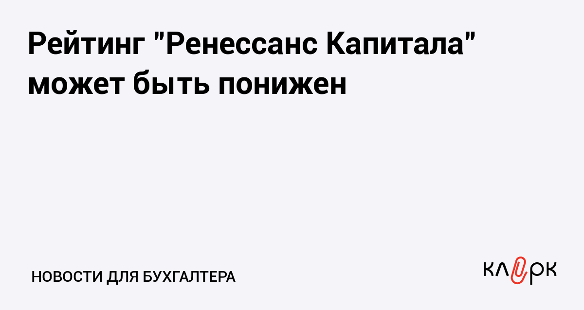 Рейтинг "Ренессанс Капитала" может быть понижен