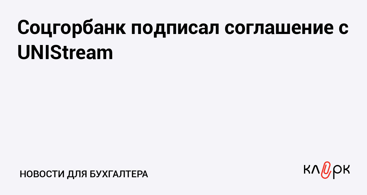 Международная система денежных переводов UNIStream подписала партнерское соглашение с КБ "Соцгорбанк", центральный офис которого находится в г. Мытищи Московской области.