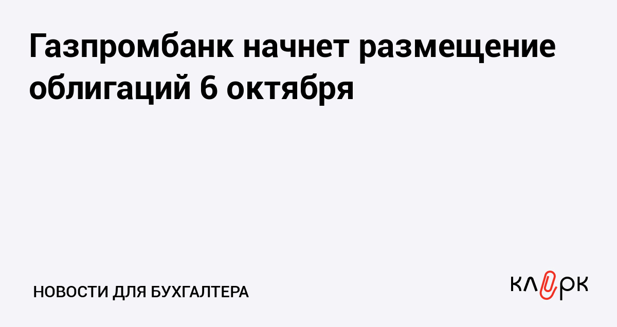 6 октября Газпромбанк планирует начать размещение облигаций 3-й серии на 10 млрд. рублей.