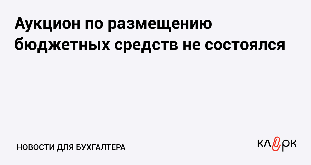 Минфин РФ признал несостоявшимся назначенный на 1 октября аукцион по размещению средств федерального бюджета на банковские депозиты в связи с отсутствием заявок.
